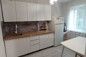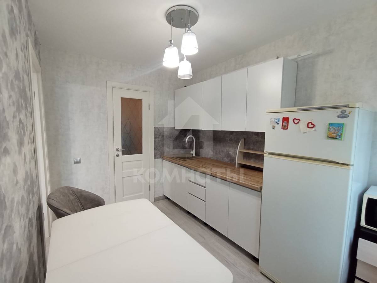 Квартира оснащена мебелью и техникой: кухонный гарнитур, холодильник, микроволновка; в комнате большой диван, шкаф, тумба под телевизор.