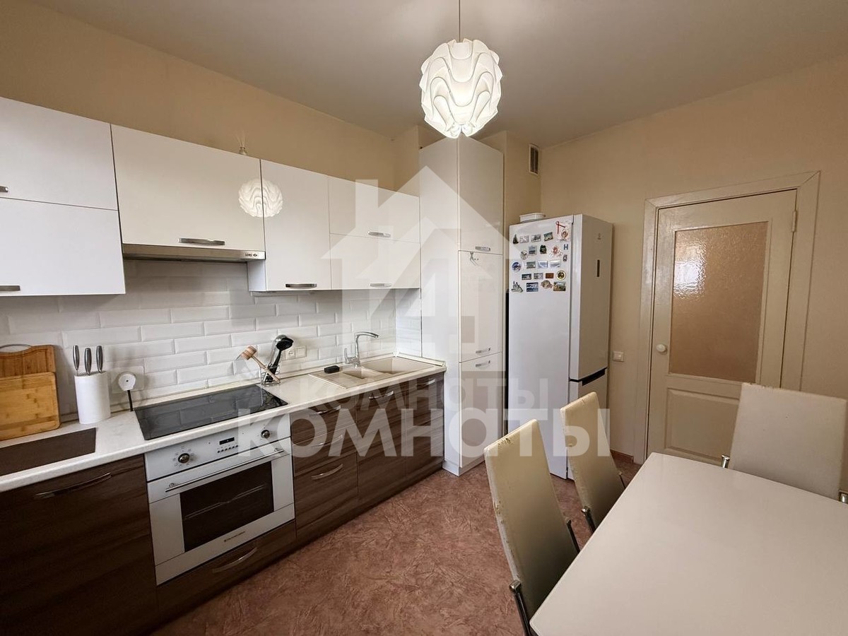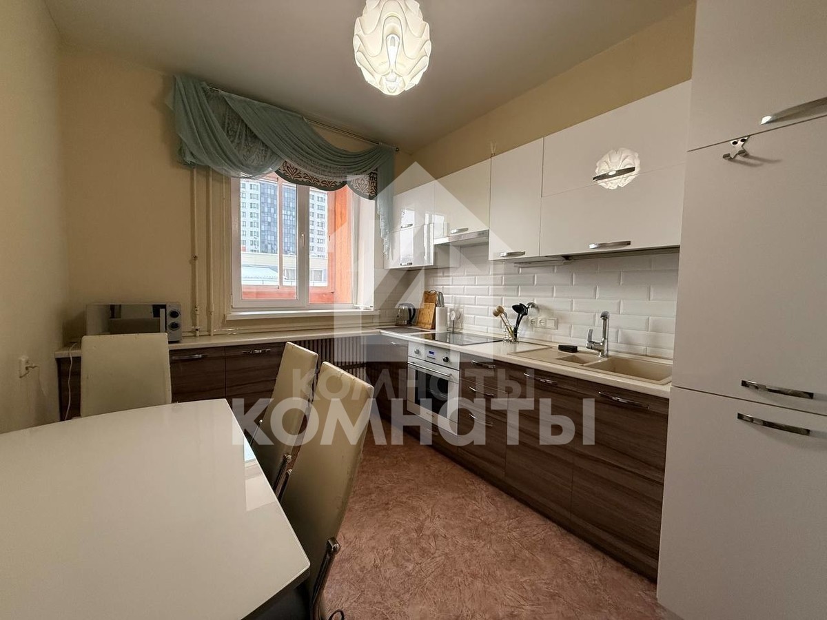 В квартире остается вся необходимая для жизни техника и мебель: холодильник, микроволновка, кухонный гарнитур, стол со стульями на кухне, спальные места и места для хранения вещей, стиральная машинка. В жилой комнате остается большая кровать, диван, а также установлен кондиционер. В комнате есть выход на большой застекленный балкон - возможность сделать для себя зону отдыха, рабочий кабинет или место для хранения вещей.