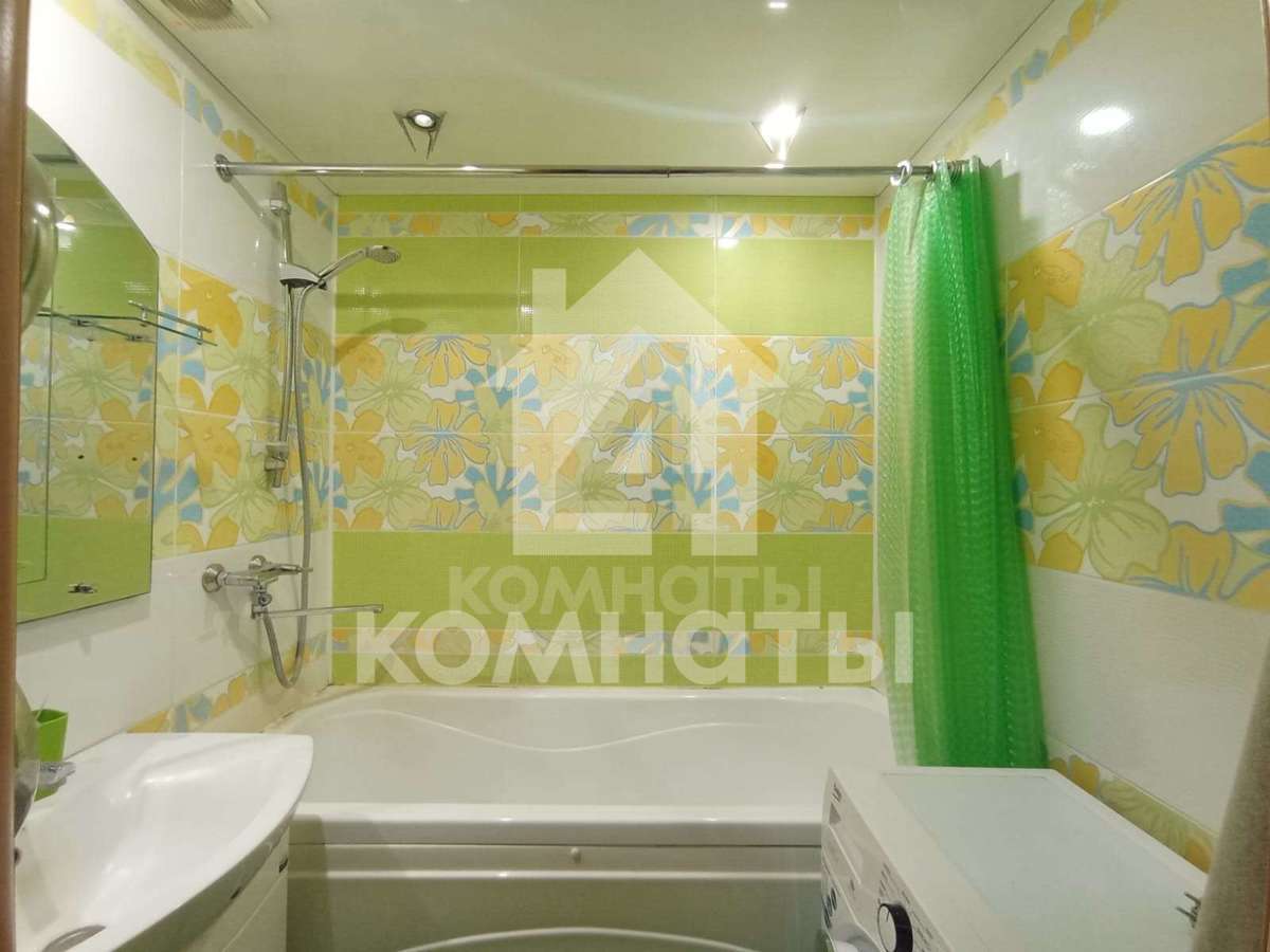 - санузел раздельный, стены и пол в ванной отделаны яркой дизайнерской плиткой;