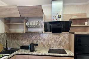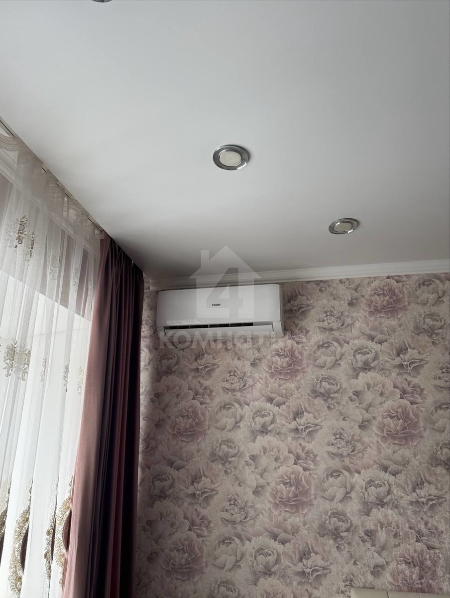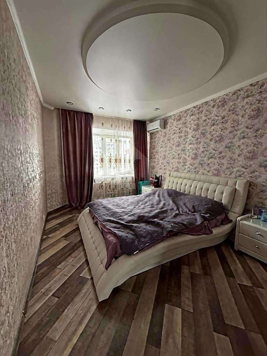 В квартире выполнен хороший и качественный ремонт и остается вся мебель и техника - возможность заехать и жить. В комнате светло и красиво : установлен кондиционер, встроенный шкаф, большая кровать с тумбочками.