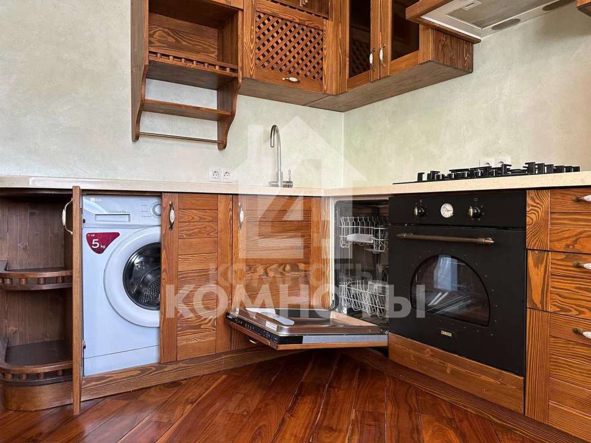 - Кухонный гарнитур с фасадами из натурального дерева и встраиваемой техникой (холодильник, морозильная камера, посудомоечная машина, стиральная машина, Варочная панель, духовой шкаф и вытяжка) - остаются новому собственнику.