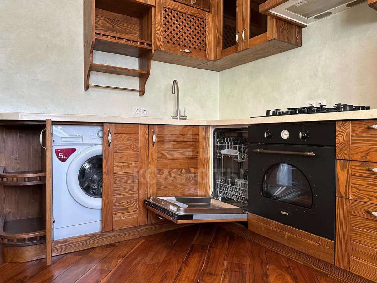 - Кухонный гарнитур с фасадами из натурального дерева и встраиваемой техникой (холодильник, морозильная камера, посудомоечная машина, стиральная машина, Варочная панель, духовой шкаф и вытяжка) - остаются новому собственнику.