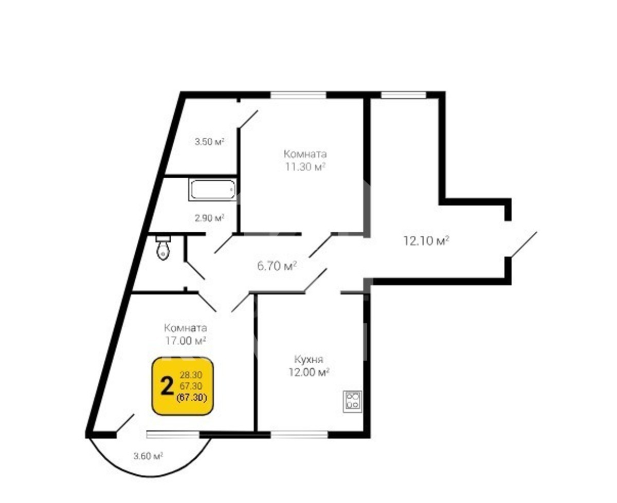 Квартира 67,3 кв.м, две изолированные комнаты, просторная кухня правильной формы 12 кв м, мастер-спальня 14,8 кв м. Предчистовая отделка. Высокая шумоизоляция.