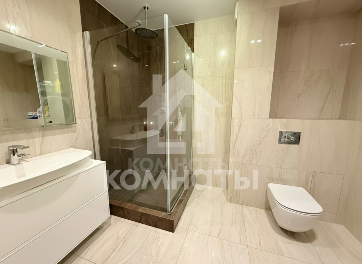 Два больших санузла 5 и 7 кв м. В санузлах выполнена отделка дорогой плиткой. В кухне-гостинной установлен новый кухонный гарнитур со встроенной техникой Bosch. В прихожей и спальне находятся два больших зеркальных шкафа для хранения, которые останутся новым хозяевам.
