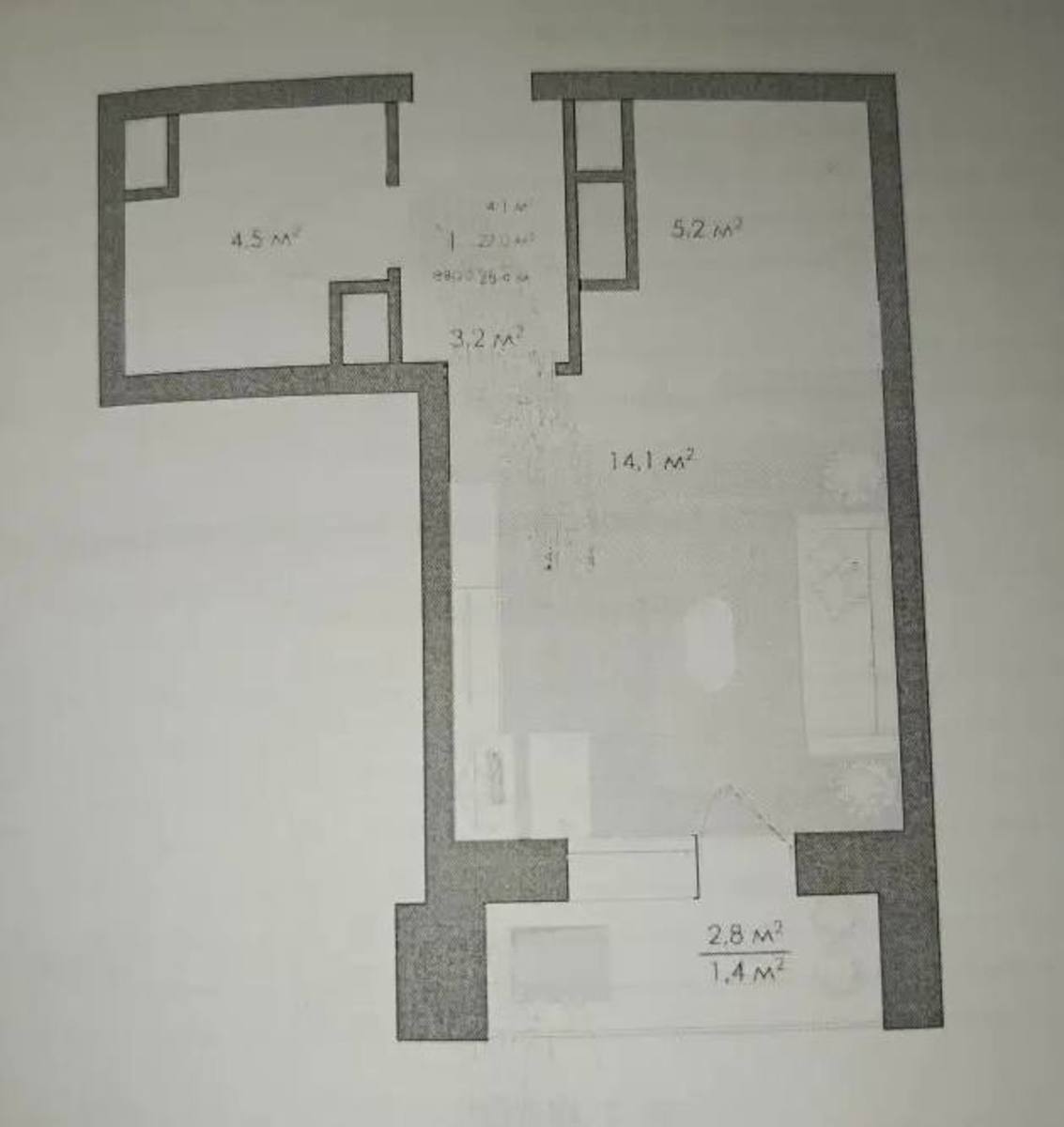 Квартира-студия площадью 30 кв. м с большой лоджией.