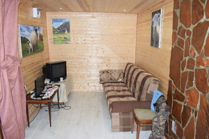 Дом общей площадью 70 кв.м. В доме: три комнаты, кухня, раздельный санузел. Вода и электричество заведены в дом. Пристроен гараж с ямой. В доме имеются скважина и погреб.