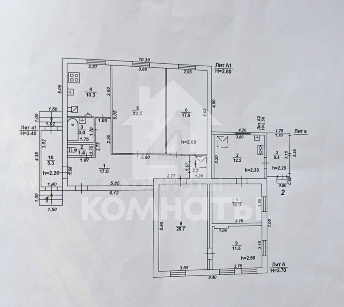 В доме: четыре просторные комнаты - 22,3; 20,7, 17,9; 11,5 кв.м., кухня - 10,3 кв.м., раздельный санузел, гараж, кладовка, подвал.