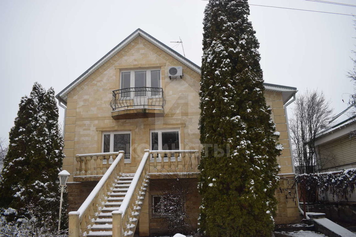Основной дом общей площадью 260 кв.м. отделан дагестанским камнем светлых тонов.