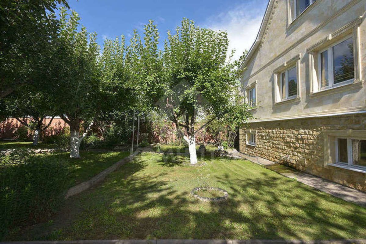 Дом - полностью кирпичный, ширина стены - 2.5 кирпича, обложен дагестанским камнем. Фундамент - блоки ФБС шириной 60 см. Крыша- металлочерепица.