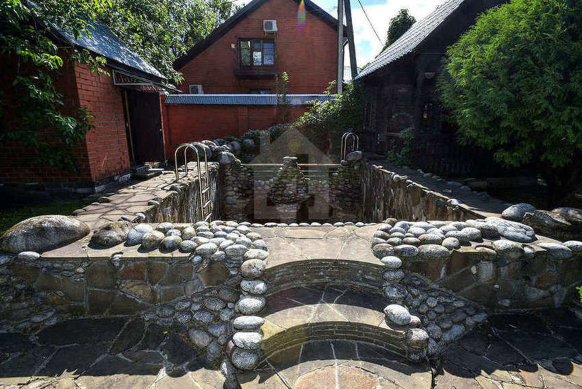 На территории организован ландшафтный дизайн, программируемый полив. Участок огорожен кирпичным забором.
