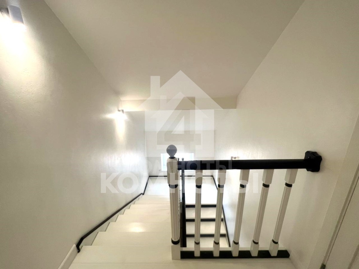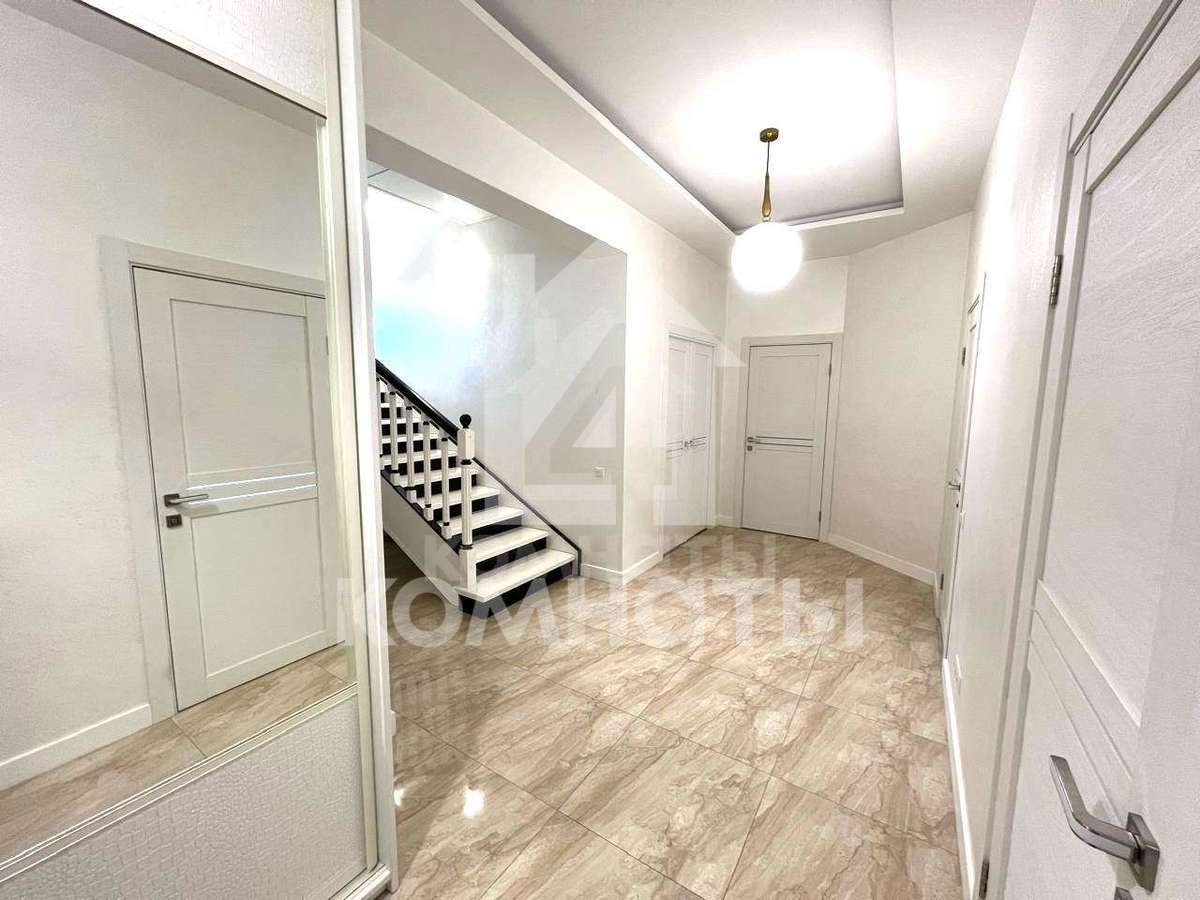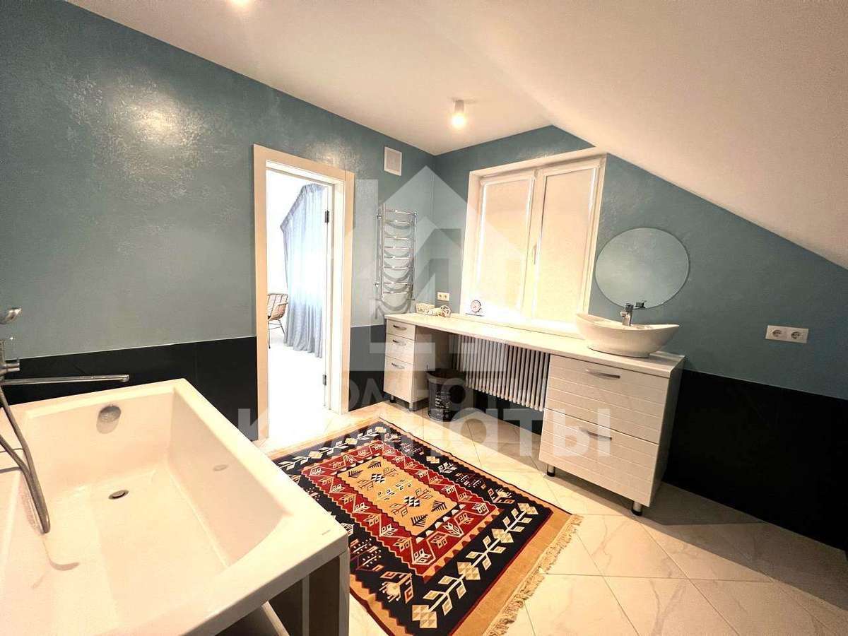На стенах - декоративная штукатурка. Пол - плитка, ламинат. Санузлы облицованы современной плиткой, новая сантехника. Потолки - гипсокартон, на кухне - натяжные потолки. Высота потолков на первом этаже - 3 м. Пластиковые окна.