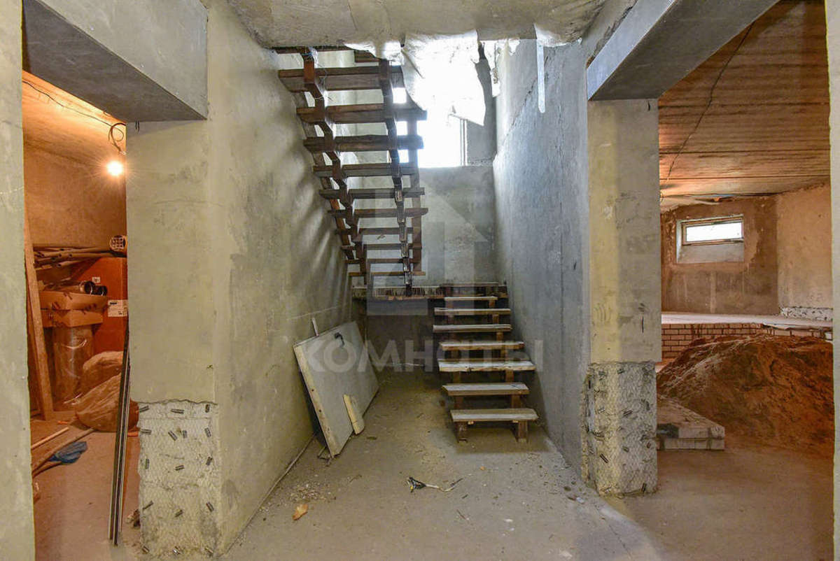 Внутренние коммуникации полностью разведены, газ введен в дом, свет, канализация, установлены два двухконтурных котла В цокольном этаже дополнительно 150 метров, везде окна, есть бетонное основание под бассейн, установлена каминная труба, на полу стяжка.