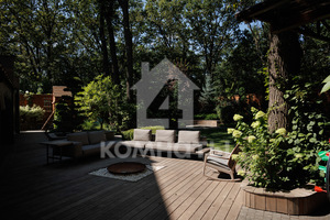 Оснащение: 2 гаража, помещение для охраны, видеонаблюдение. Качественные материалы: кирпич, клееный брус, мрамор, паркет, морёный дуб. Современные окна.