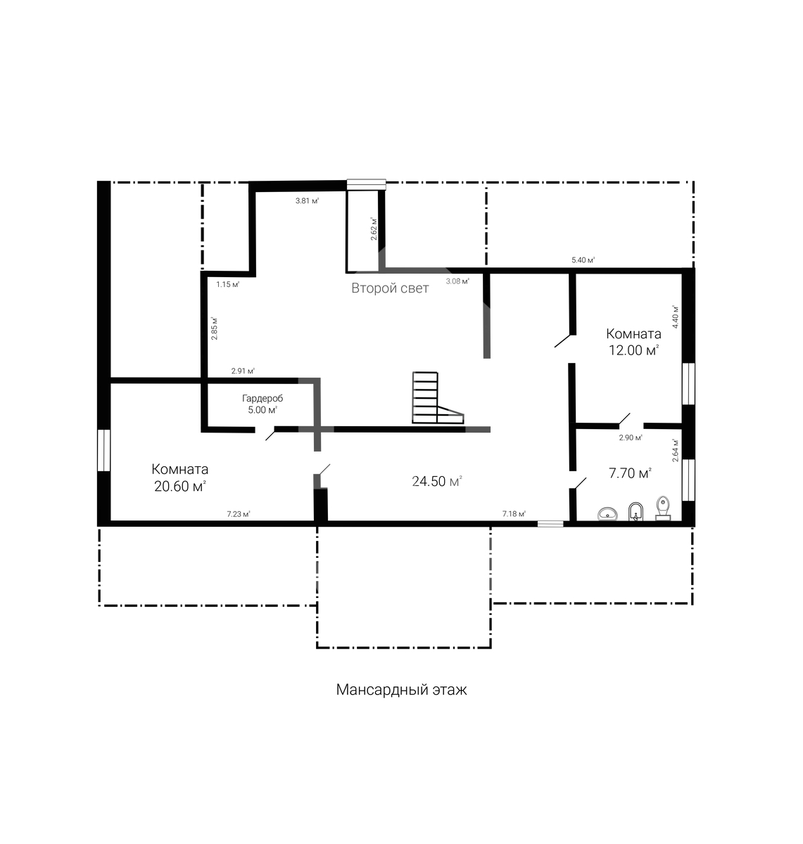 Мансарда: 2 спальни, ванная, и свободная зона