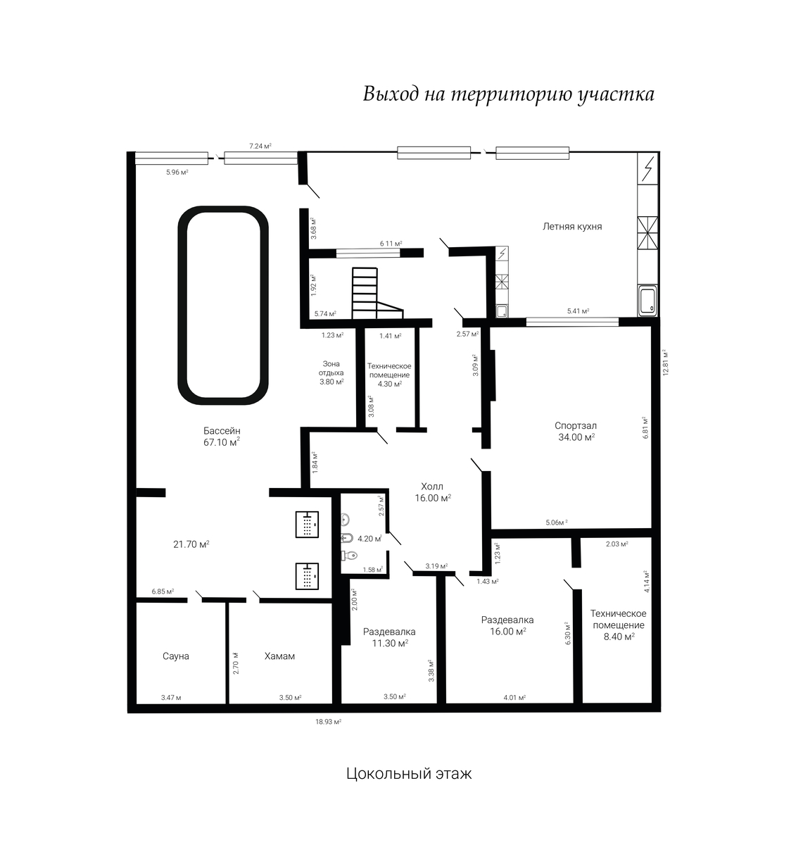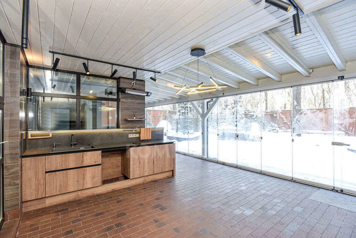 1 этаж с выходом на территорию участка: SPA-зона с бассейном, хамамом, сауной, джакузи и спортзалом; летняя кухня (Leicht, Neff). Потолки 3.6 м.