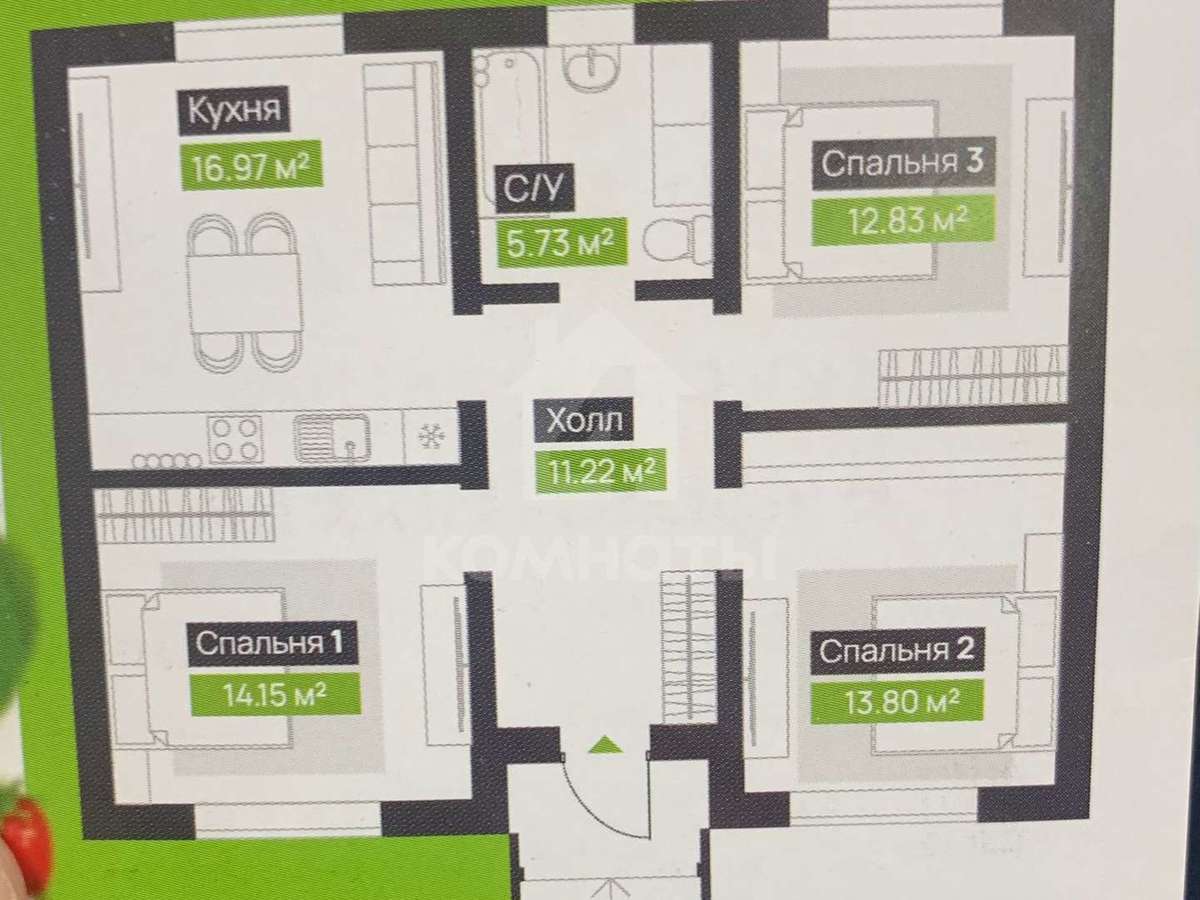 3 спальни
