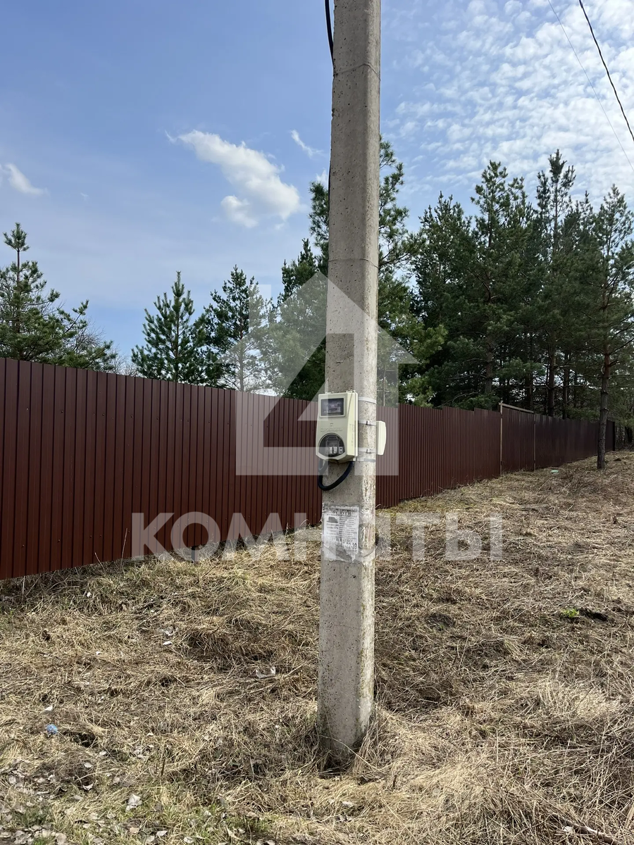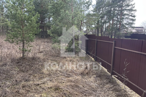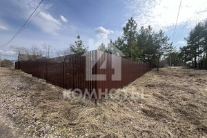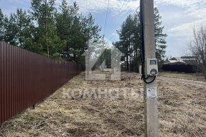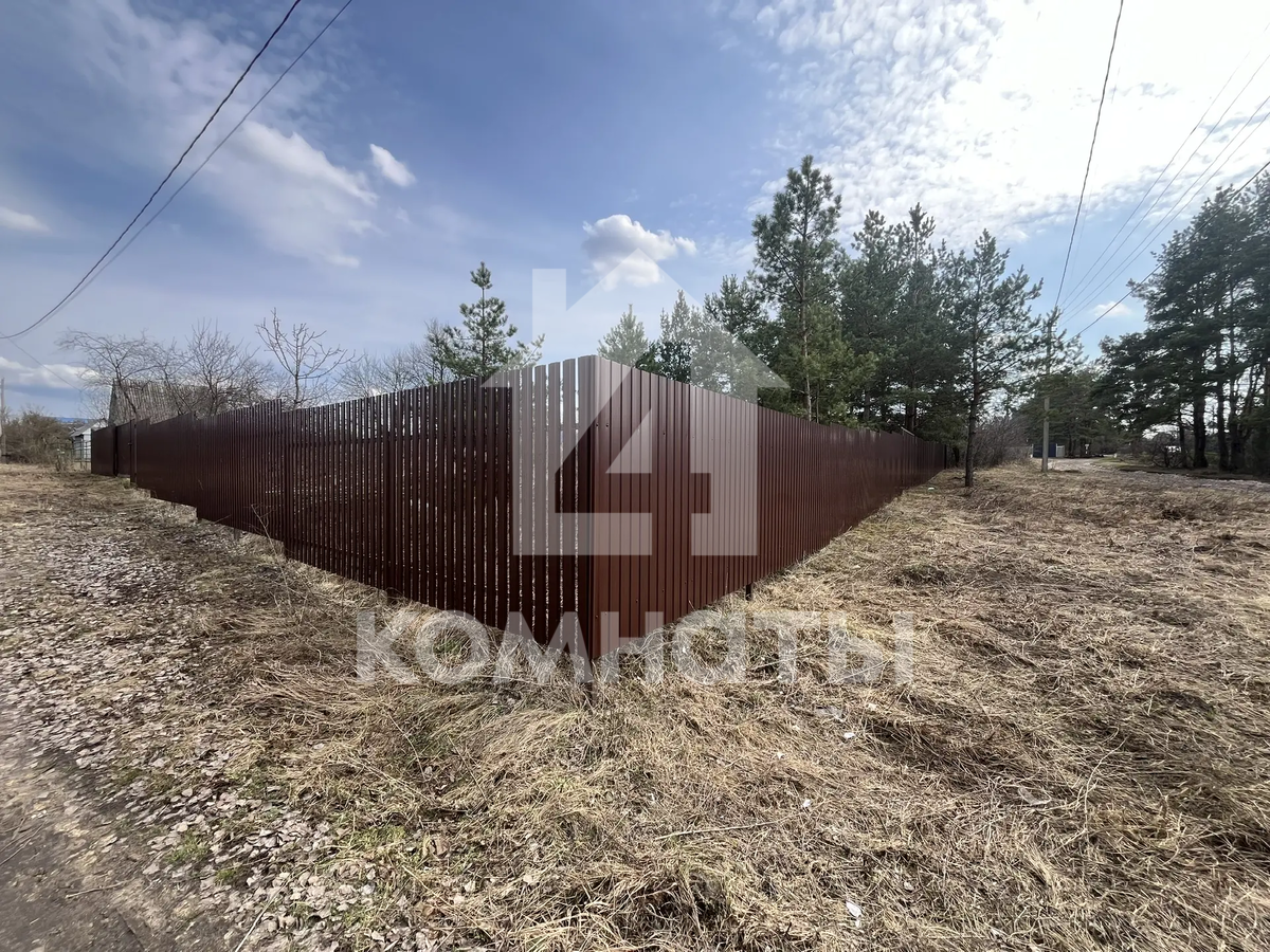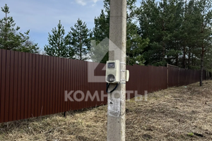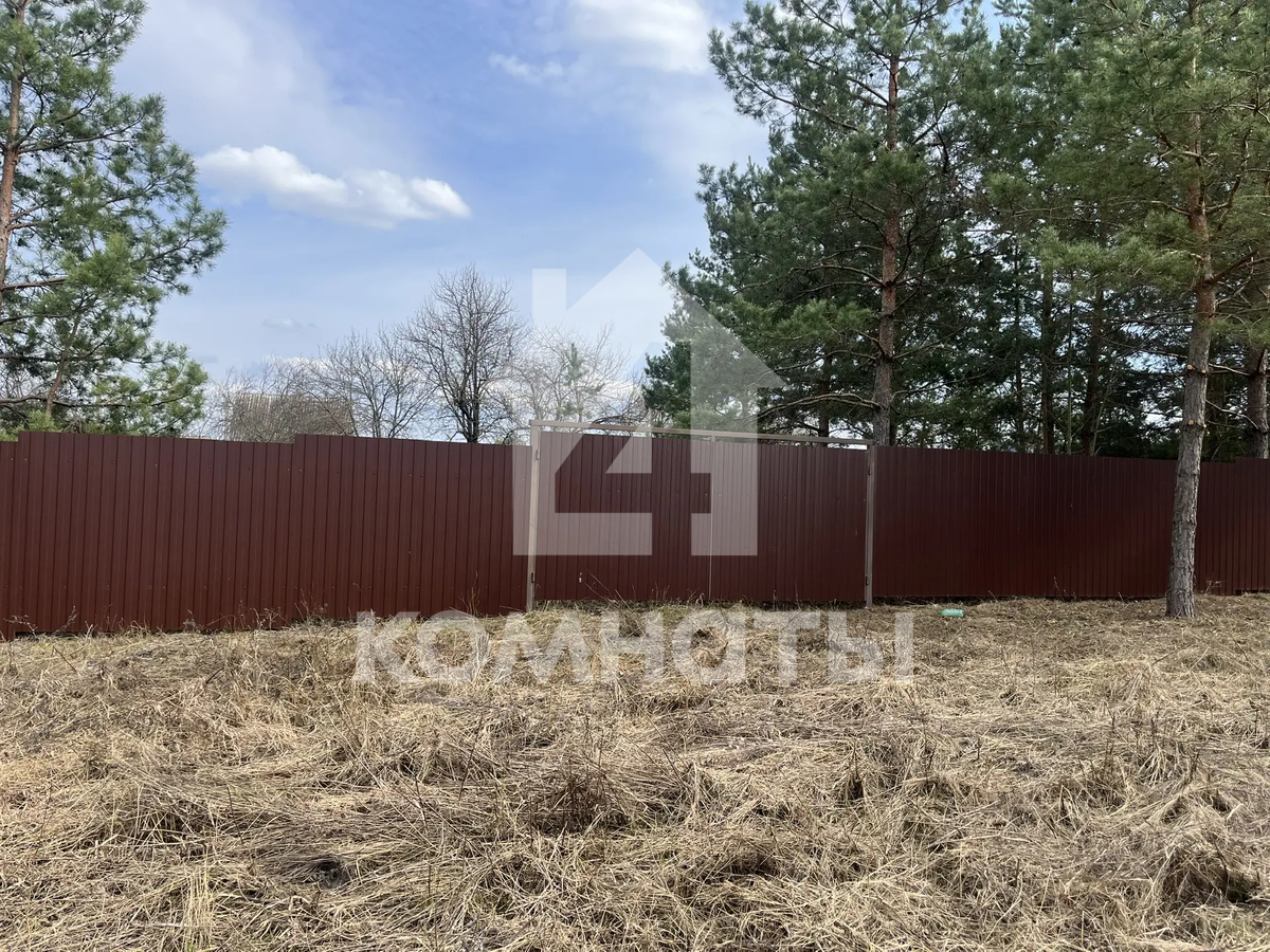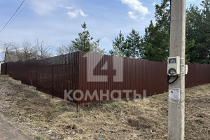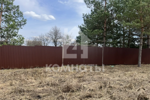 Участок огорожен забором из металлопрофиля, имеются ворота с двух сторон для заезда автомобиля и калитка. Скважина, рядом с участком световой столб и газовая труба. Угловой (соседи только по одной стороне). Межевое дело. Еловые деревья. Размеры 30*40.