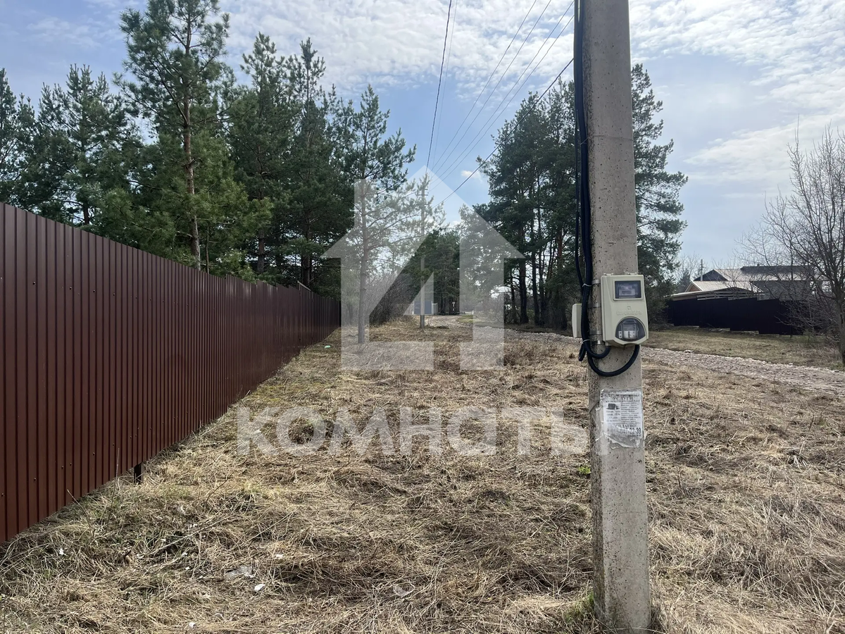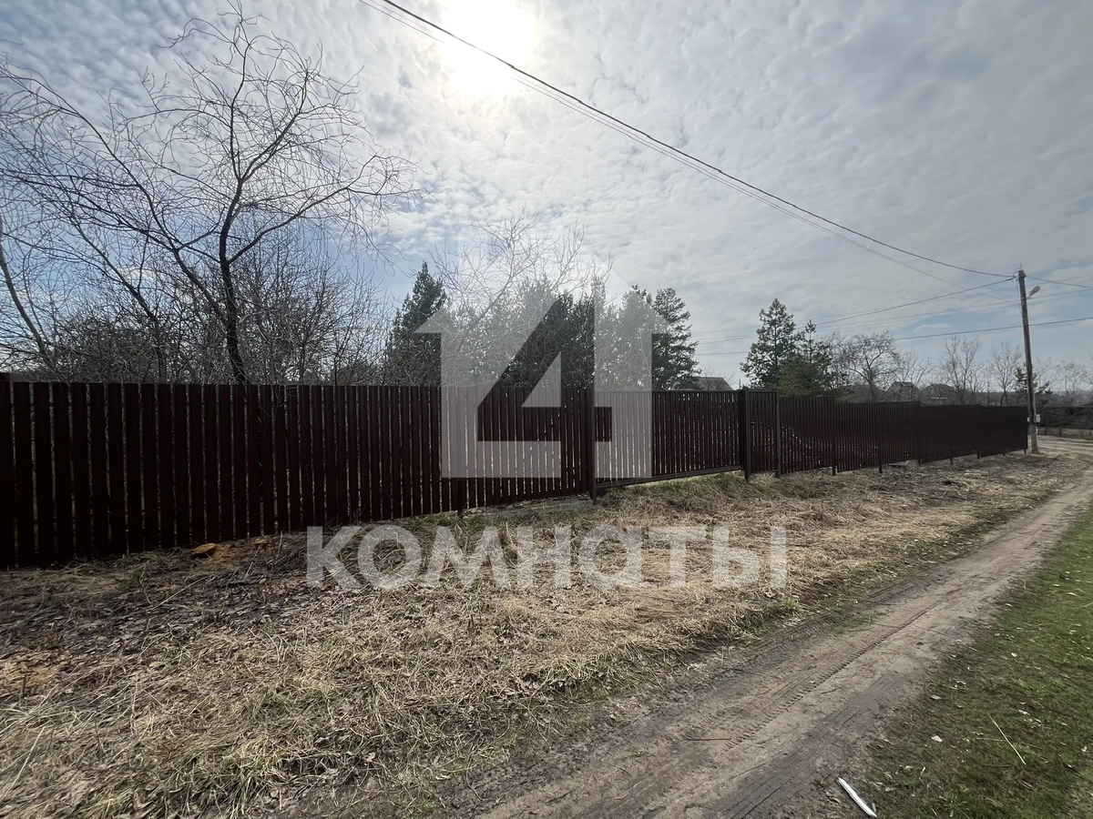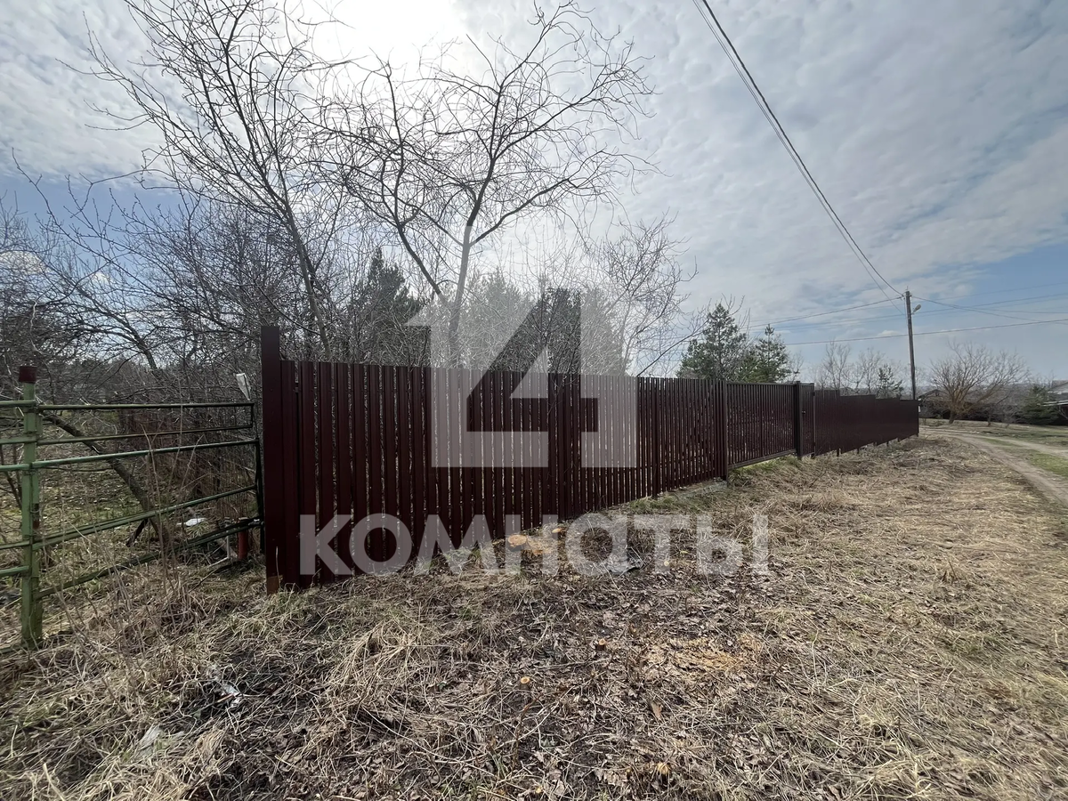 Участок огорожен забором из металлопрофиля, имеются ворота с двух сторон для заезда автомобиля и калитка. Скважина, рядом с участком световой столб и газовая труба. Угловой (соседи только по одной стороне). Межевое дело. Еловые деревья. Размеры 30*40.