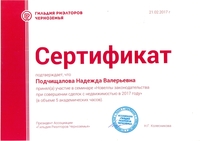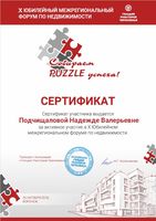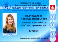 Я очень довольна работой риэлтора Подчищаловой Надежды Валерьевны. Она показала в работе прекрасные профессиональные качества, компетентность во всех вопросах и отзывчивое отношение к клиенту.